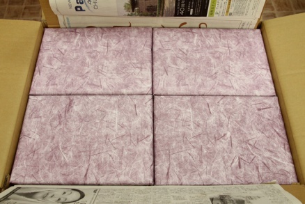 化粧箱を包装紙で包んで特注の梱包用ダンボール箱に収めました。
