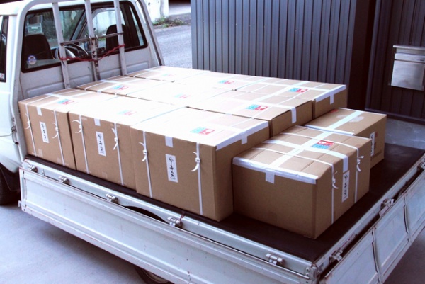 トラックの荷台に何とか収まりました。これから、クロネコヤマトさんの営業所に行って鹿児島までの配送を依頼してきます。