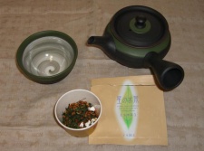 2007年02月24日(土) 帯茶こし急須とお茶 玄米茶 星野製茶園製の玄米茶を飲んでみました。 袋から出してみると、名前の通りにお茶と玄米がブレンドされていました。 早速、急須(もちろん宇幸窯の帯茶こし急須)でお茶を入れて飲んでみました。 まず香りですが、淡いお茶の香りの中に玄米の香ばしい香りがミックスしています。 味はさっぱりとしたお茶に香ばしい香りが付加されていて、とても飲みやすいです。 メーカーのHPによれば、カフェインなどの成分がうすいので、寝る前などにも適しているようです。