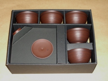 急須と湯呑みは、安全にお届けするため専用の化粧箱にてお送りします。急須の注ぎ口には保護のためのゴムを付けてあります。ご利用の際には取り外してください。
